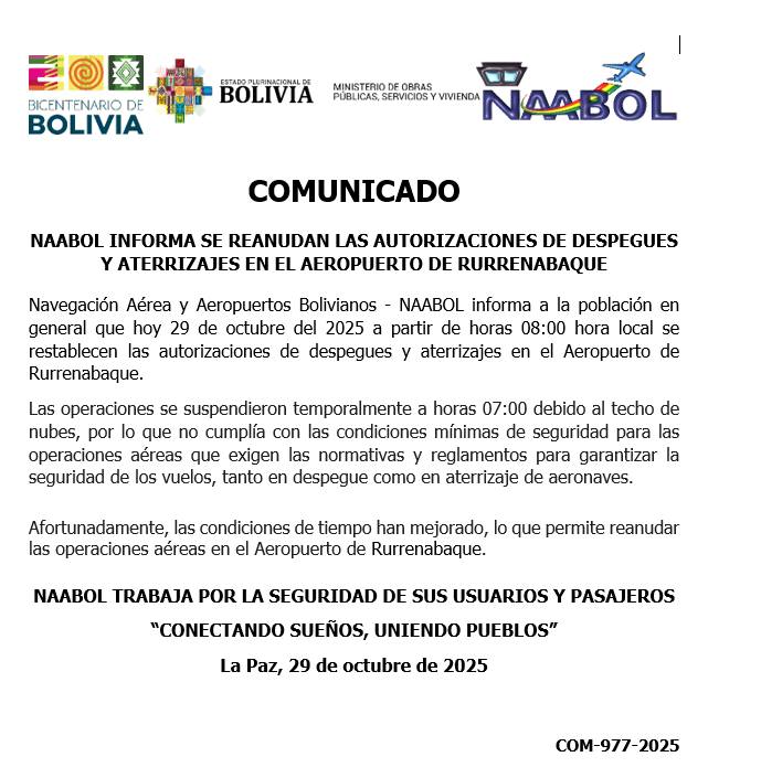 Navegación Aérea y Aeropuertos Bolivianos (NAABOL) anuncia con orgullo la...
