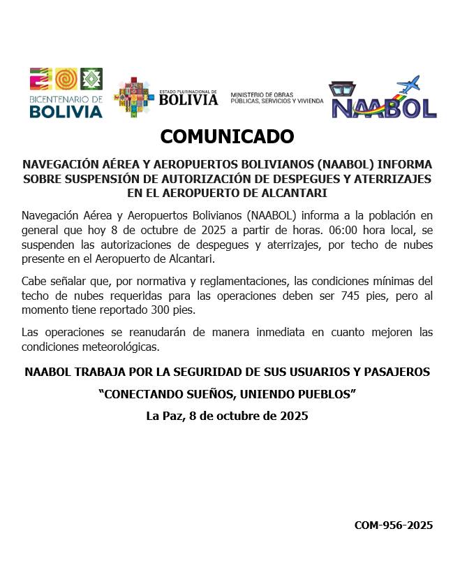 Navegación Aérea y Aeropuertos Bolivianos (NAABOL) anuncia con orgullo la...