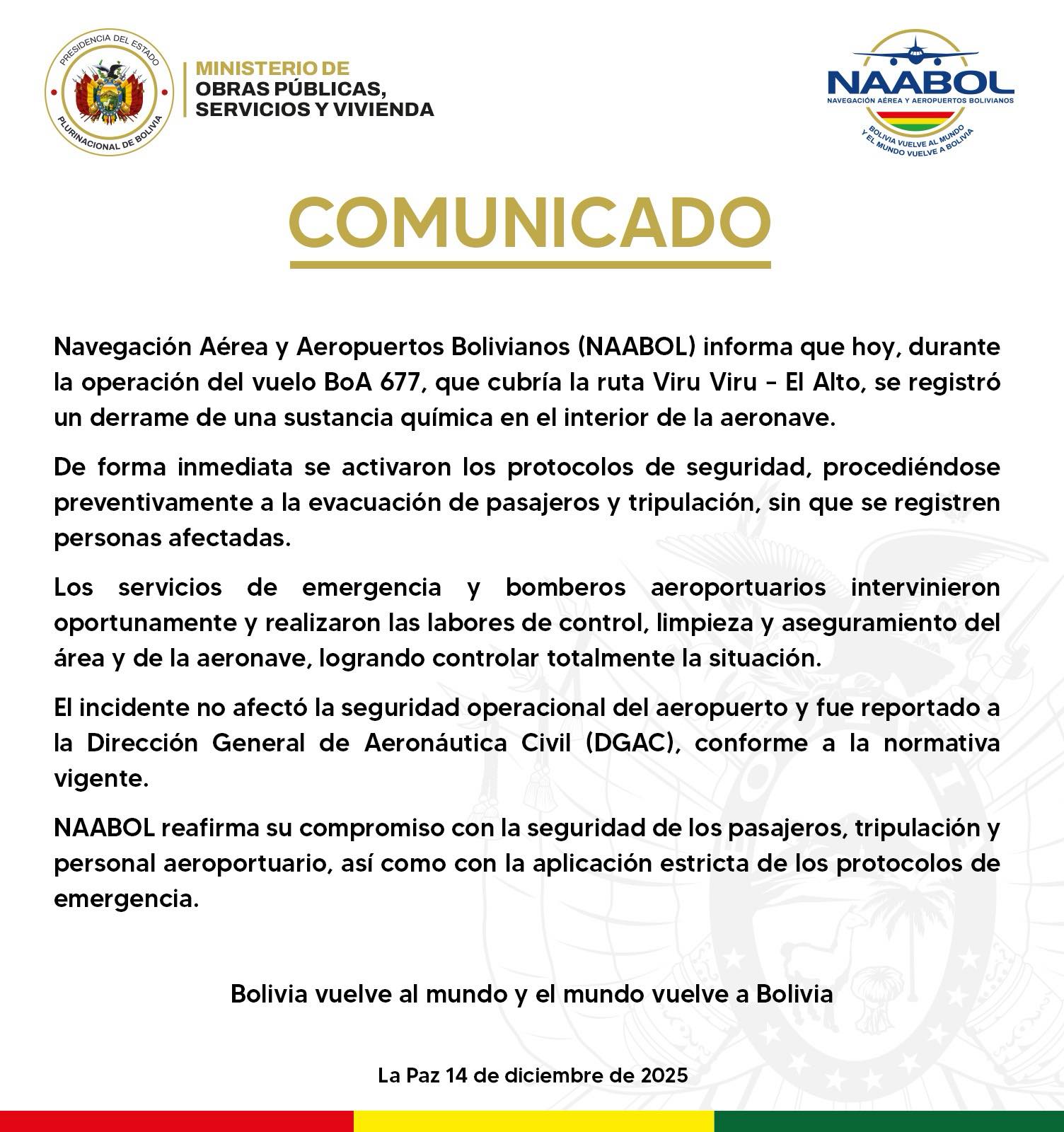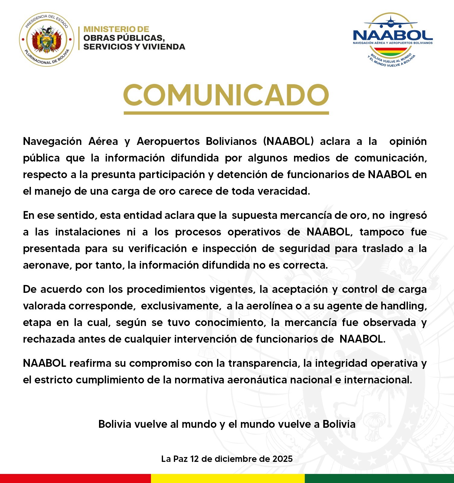 Navegación Aérea y Aeropuertos Bolivianos (NAABOL) informa a la opinión...