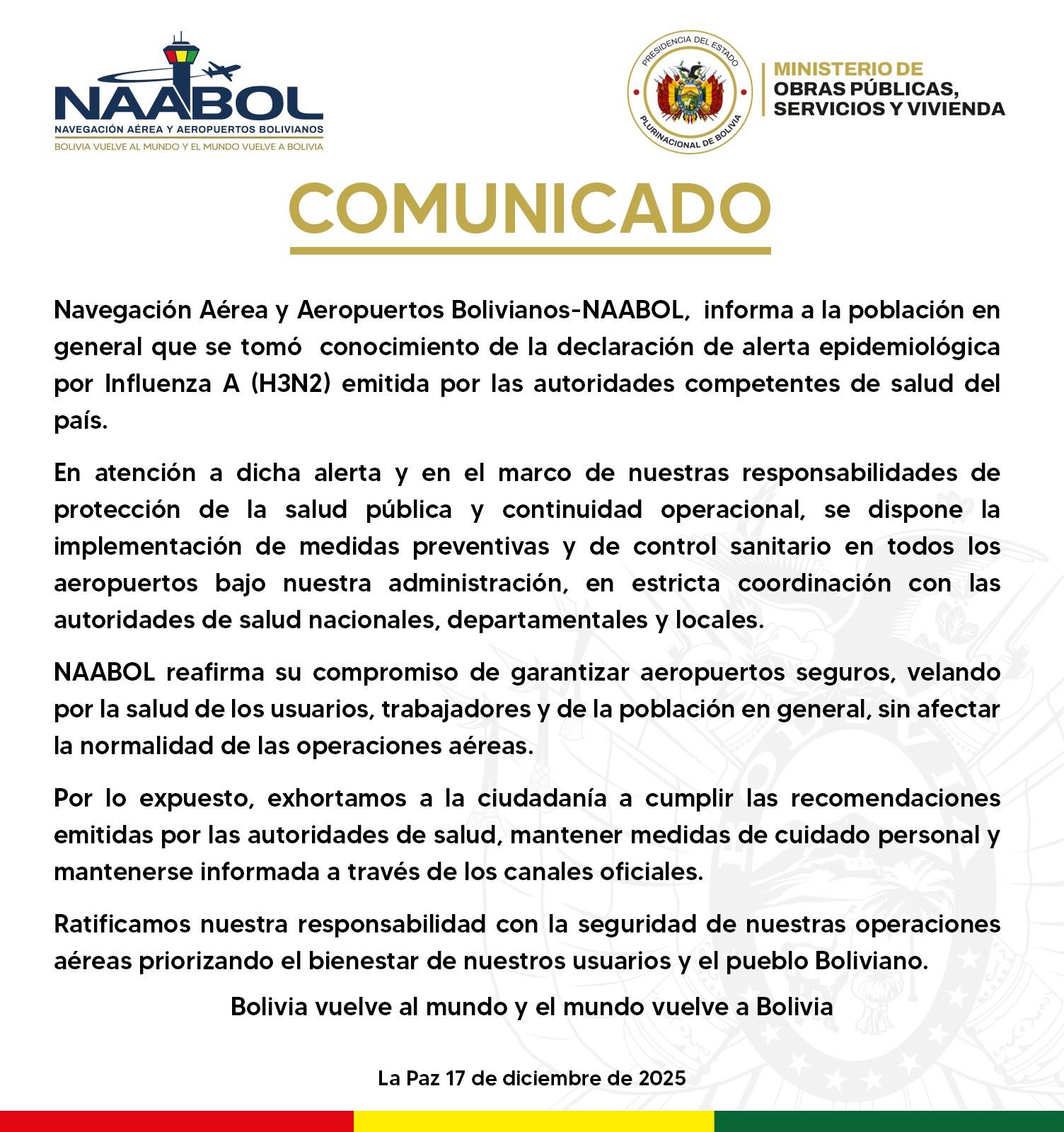 La Paz, 02 – Dic-2025 –NAABOL, Navegación Aérea y Aeropuertos...