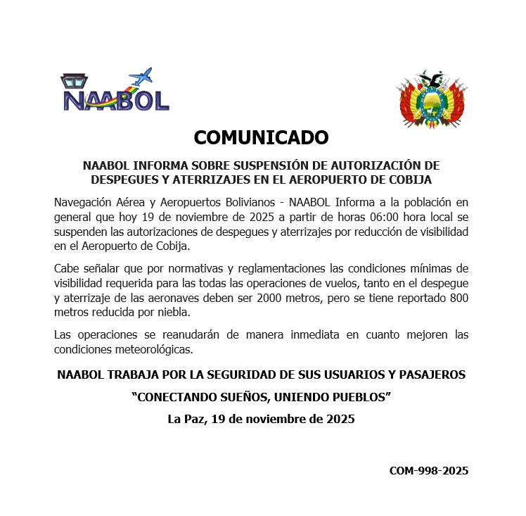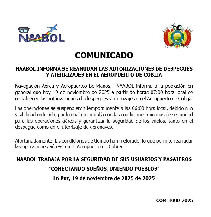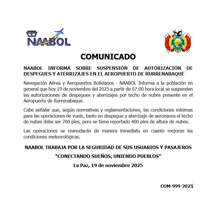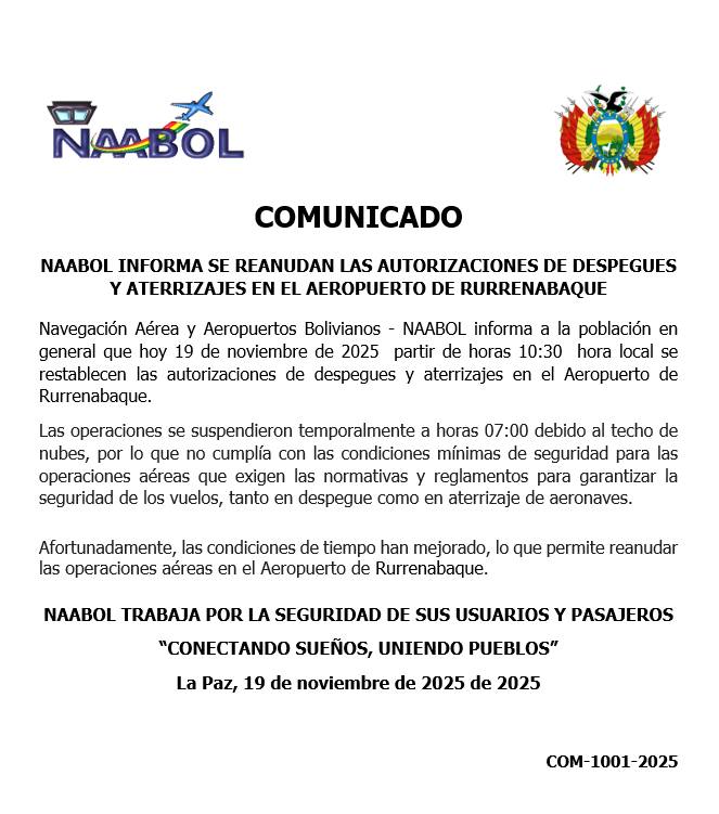 Navegación Aérea y Aeropuertos Bolivianos (NAABOL) informa a la opinión pública que en la presente jornada fue presentado el nuevo Director General Ejecutivo, Cap. Jaime Humberto Machicao Roca, profesional con amplia trayectoria en