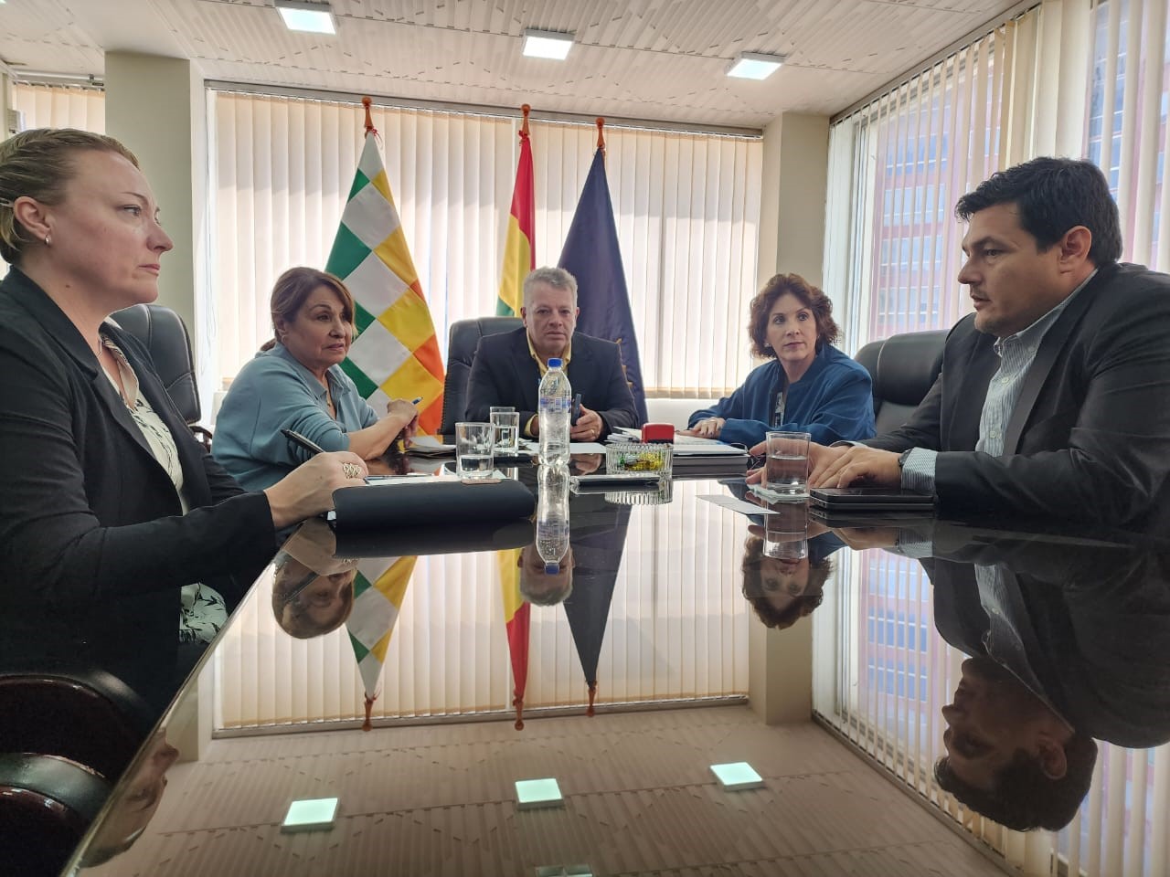 La Paz, 19 de enero (UCOM-NAABOL).- En el marco del trabajo de coordinación, el Director General Ejecutivo de NAABOL, Cap. Jaime Machicao Roca, llevó adelante una reunión de trabajo con directores, jefes y