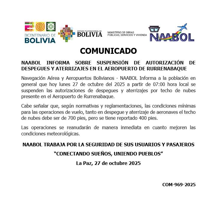 En el aeropuerto internacional Jorge Wilstermann de Cochabamba, el ministro de Obras Públicas, Servicios y Vivienda, Mauricio Zamora Liebers, posesionó a: Jaime Humberto Machicao Roca, como director general ejecutivo de Navegación Aérea y