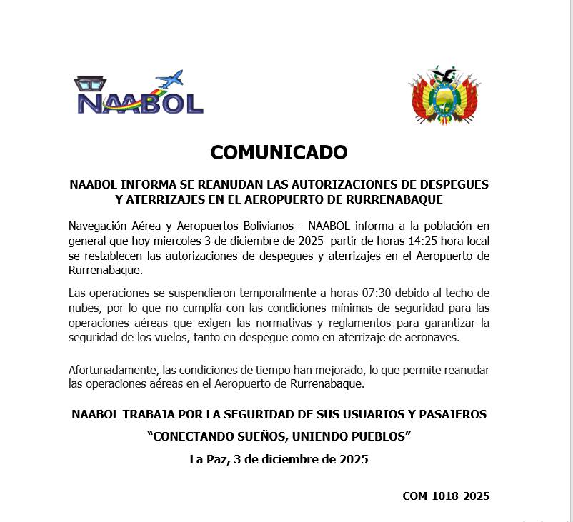 La Paz, 02 – Dic-2025 –NAABOL, Navegación Aérea y Aeropuertos Bolivianos, entidad que administra los aeropuertos, cumplió cuatro años con el desafió de un cambio estructural profundo en la entidad no solo de